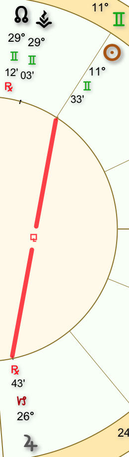 **The square between Mars/Venus is a disruptive aspect. Any conflict prompts that we try harder to get our ‘facts’ straight if we want to maintain relations, especially if our desires are motivated by kooky abstractions and ungroundedness.